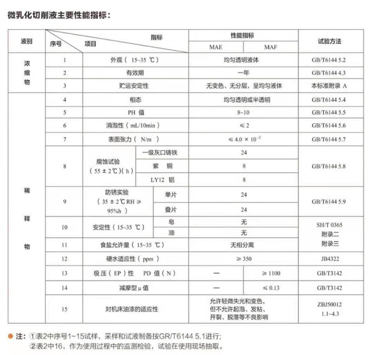 三、微乳型切削液的技術標準